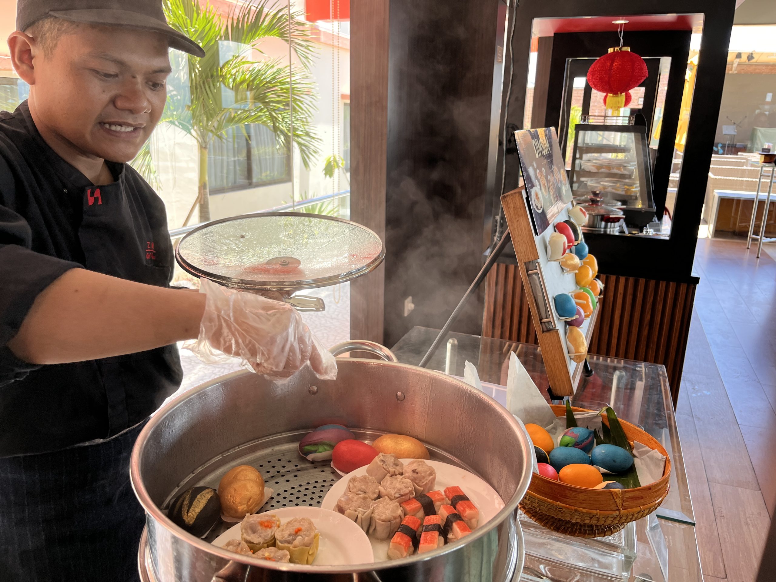 Aroma hangat masakan langsung menyambut saat memasuki area brunch. Pilihan menunya pun beragam, didominasi sajian bercita rasa oriental. Mulai dari belasan jenis dimsum, aneka pao, hingga hidangan utama seperti nasi goreng oriental, mi ayam, roasted chicken, dan peking chicken, semuanya bisa dinikmati sepuasnya.