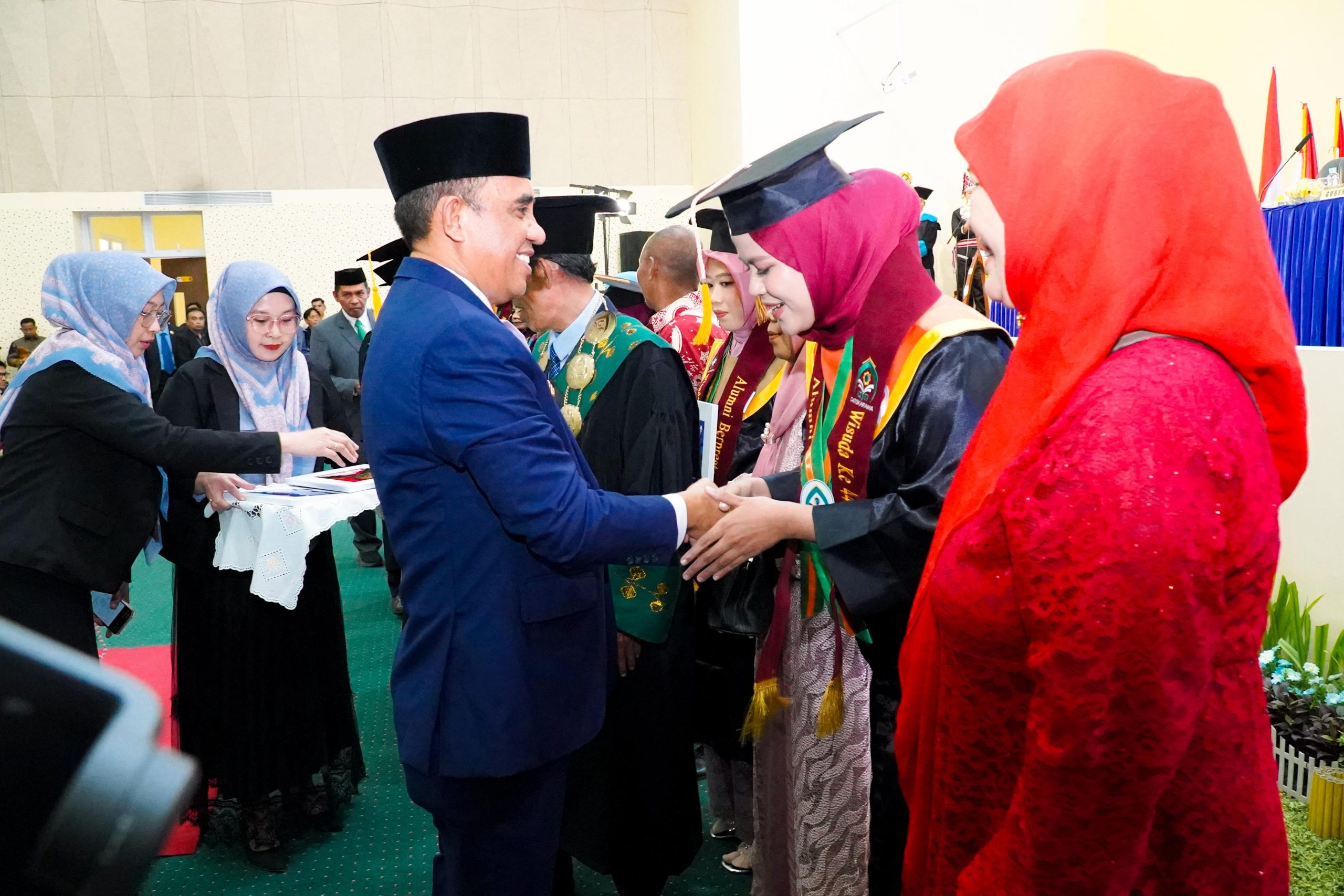 “Sepintar apapun Anda, kalau akhlaknya rusak, ilmunya tidak berguna. Tapi kalau Anda jujur, Allah akan bukakan jalan. Itu yang saya tanamkan kepada para lulusan hari ini,” tegas Rektor.