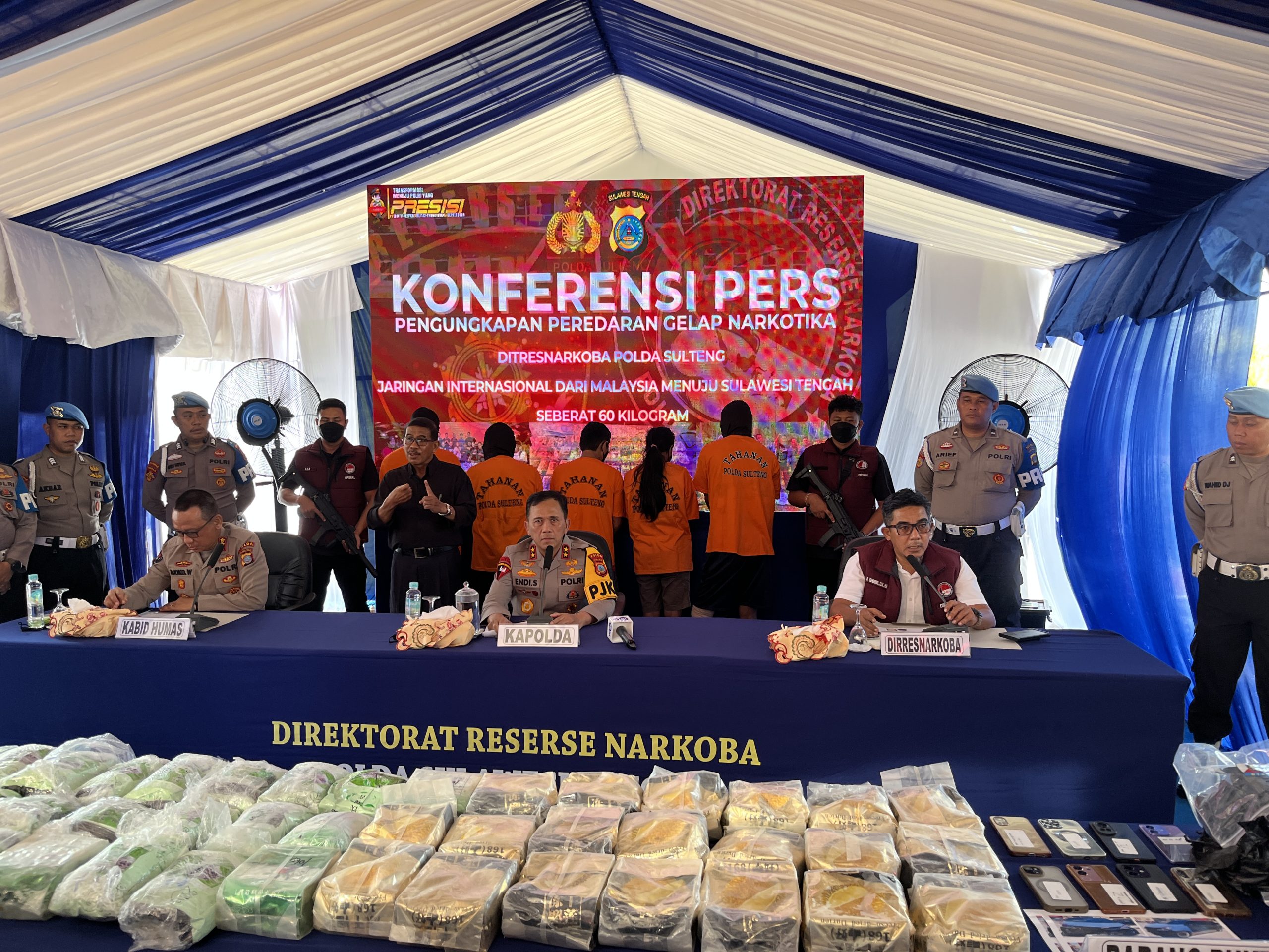 Polda Sulteng Ungkap 60 Kg Sabu dari Malaysia, Lima Tersangka Diduga Jaringan Internasional