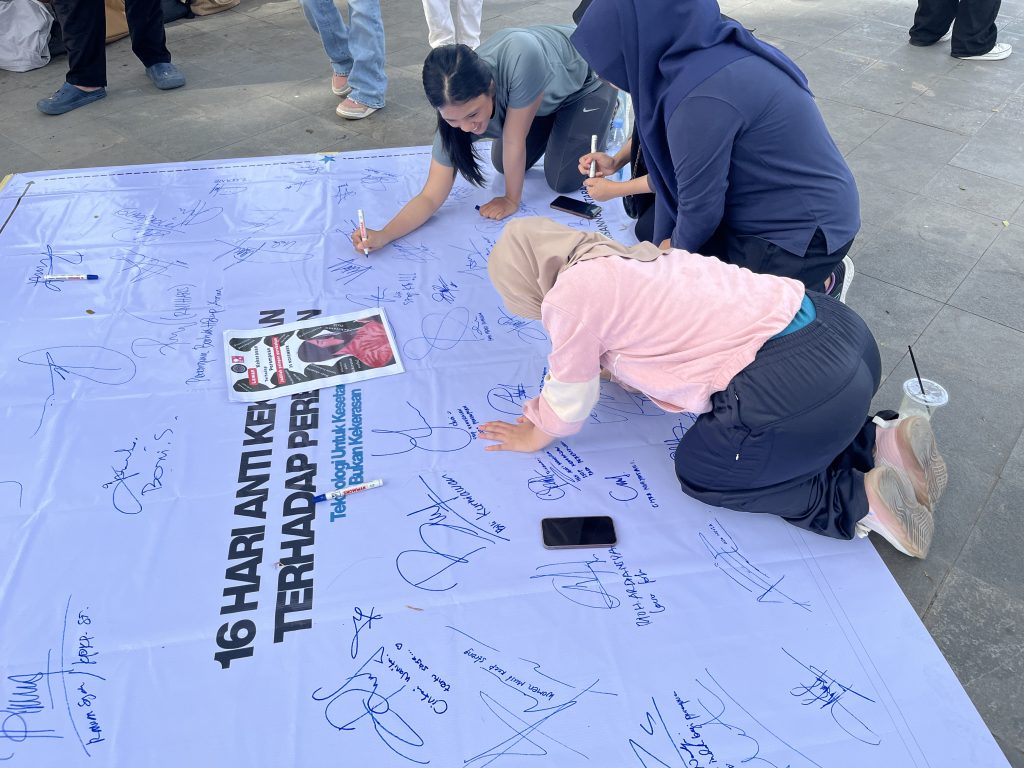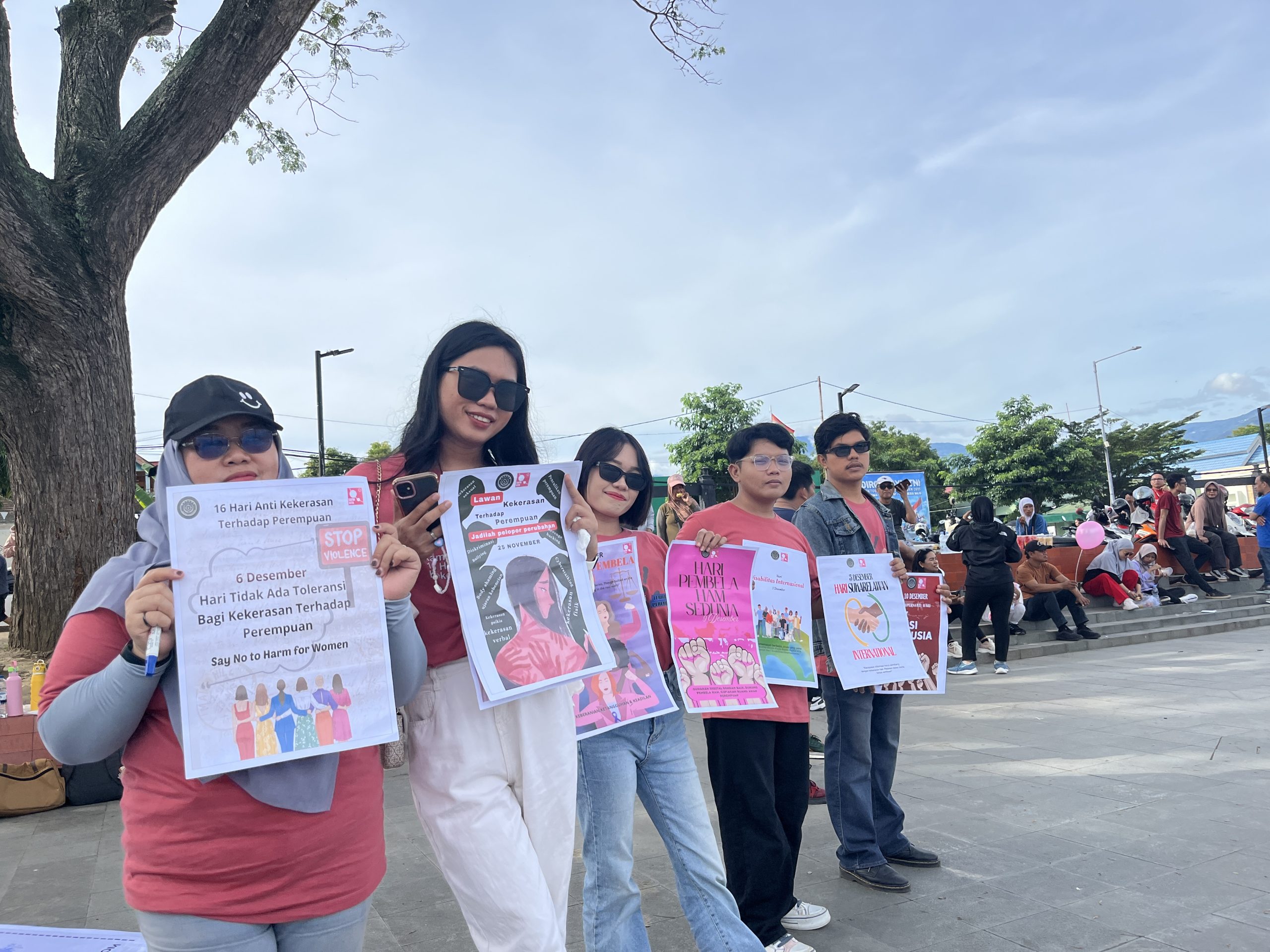 Aksi ini menghadirkan ruang aman dan inklusif bagi masyarakat Palu untuk menyuarakan penolakan terhadap segala bentuk kekerasan berbasis gender, khususnya di ranah digital. Sebagai simbol dukungan, peserta menandatangani komitmen bersama pada sebuah spanduk besar yang dipasang di area kegiatan.