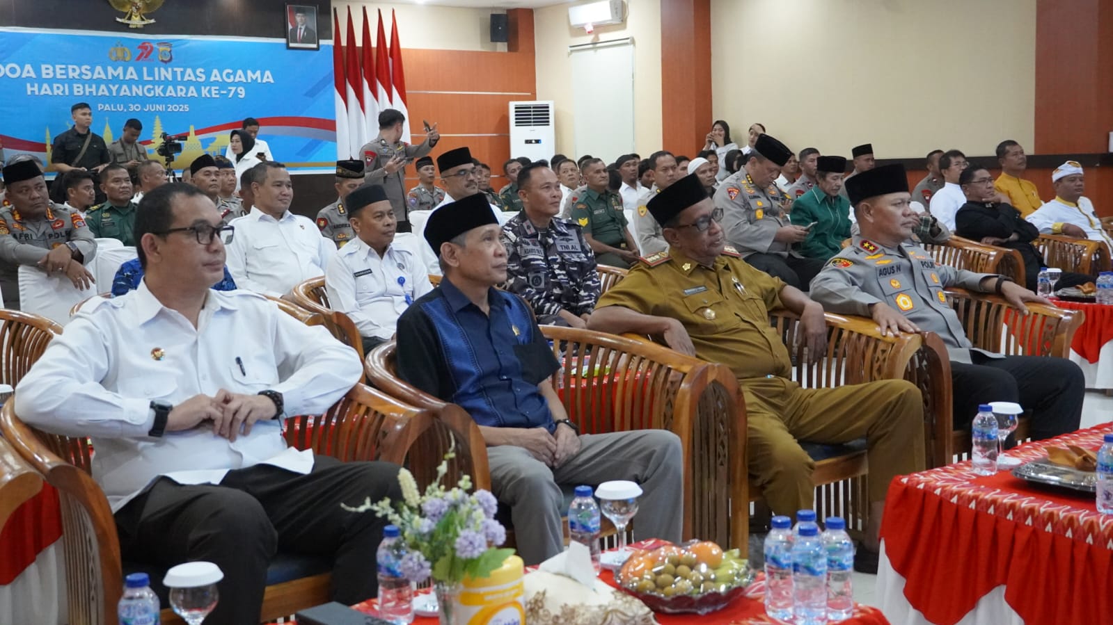 Turut hadir sejumlah pejabat dan tokoh penting di Sulawesi Tengah. Gubernur Sulteng diwakili oleh Asisten I Bidang Pemerintahan dan Kesra, Fahrudin Yambas. Hadir pula Kapolda Sulteng Irjen Pol. Agus Nugroho, jajaran Polda Sulteng, Kapolres Palu, Danrem 132/Tadulako, Kajati Sulteng, Ketua Pengadilan Tinggi Sulteng, Danlanal Palu, Rektor UIN Datokarama Palu, Ketua Forum Kerukunan Umat Beragama (FKUB) Sulteng, tokoh-tokoh agama, serta para tamu undangan lainnya. Kegiatan ini juga diikuti secara virtual oleh jajaran Kepolisian Republik Indonesia di seluruh Indonesia.