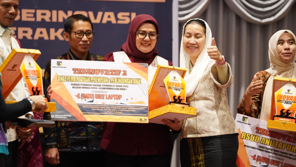 KAUSA.ID, Palu – Wakil Wali Kota Palu Imelda Liliana Muhidin menyerahkan Apresiasi Inovasi Award Daerah Kota Palu 2025 di Sriti Convention Hall, Kamis (23/10/2025).