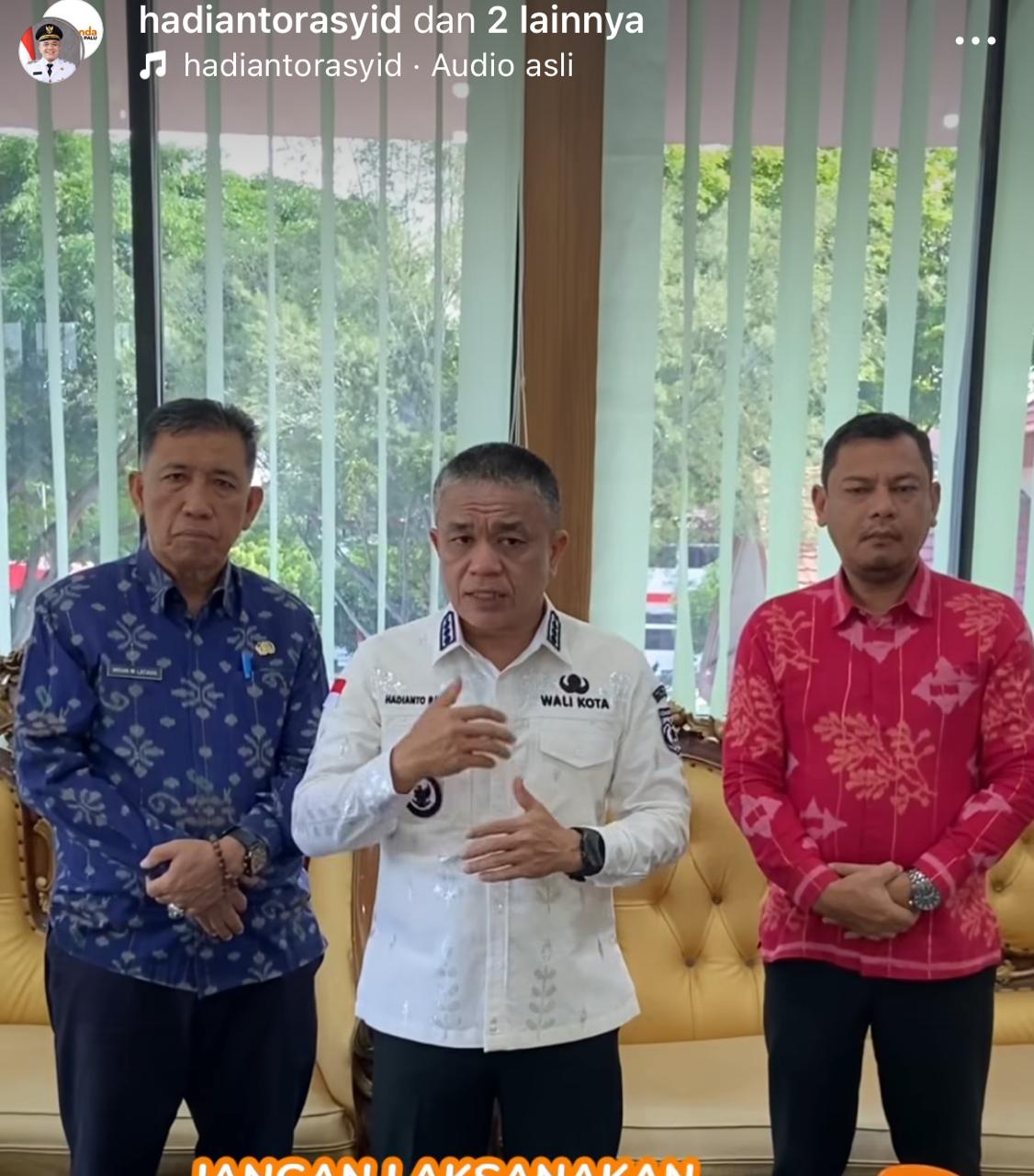Instruksi ini disampaikan langsung melalui akun Instagram pribadi Wali Kota Palu @hadiantorasyid, Kamis (21/08/2025).